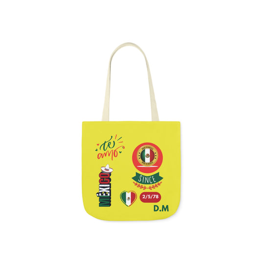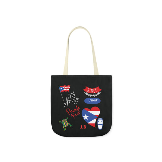Ecuadorian Pride White Canvas Tote Bag with 5-Color Straps – Te Amo & Yo Soy Designs( Personalized Date of Birth & initials)