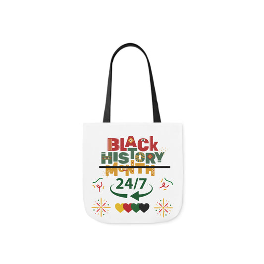 Black, Black History Graphic Design Canvas Tote Bag, 5-Color Straps
