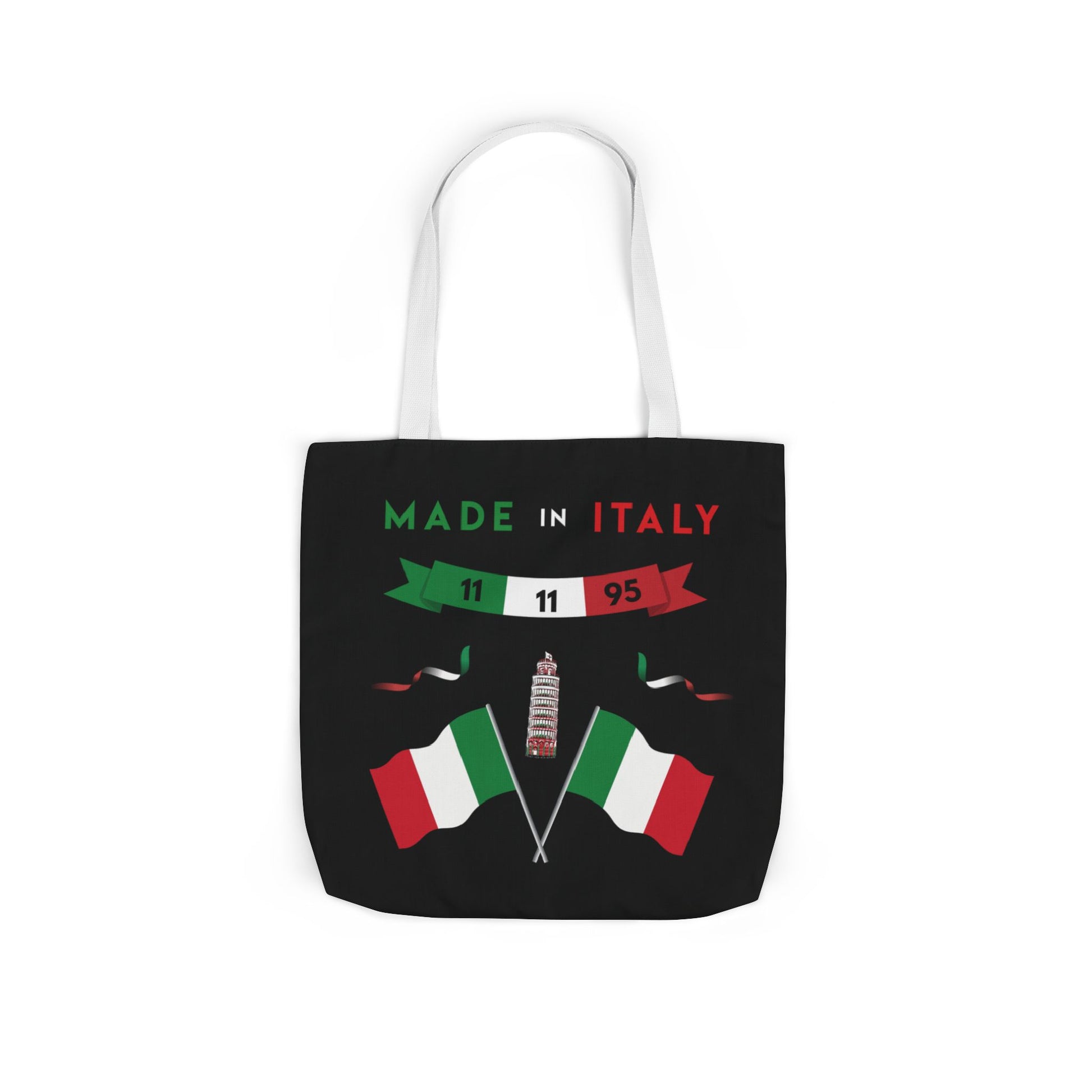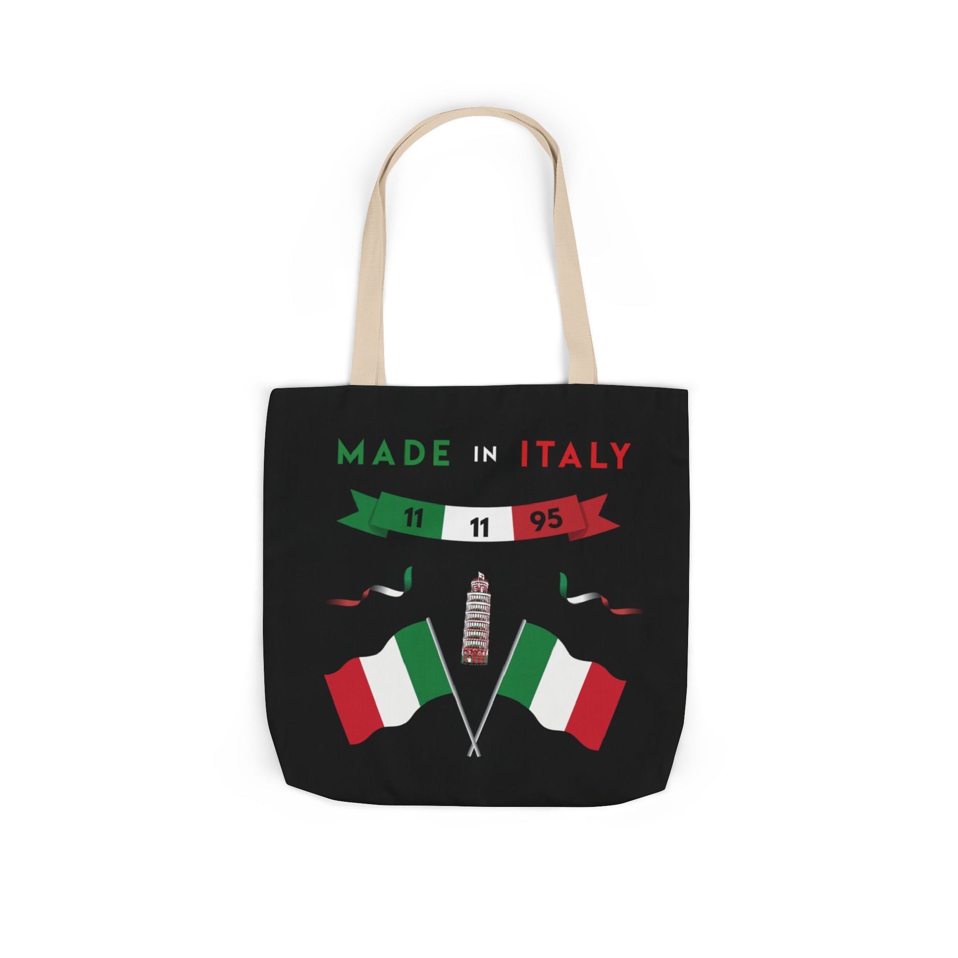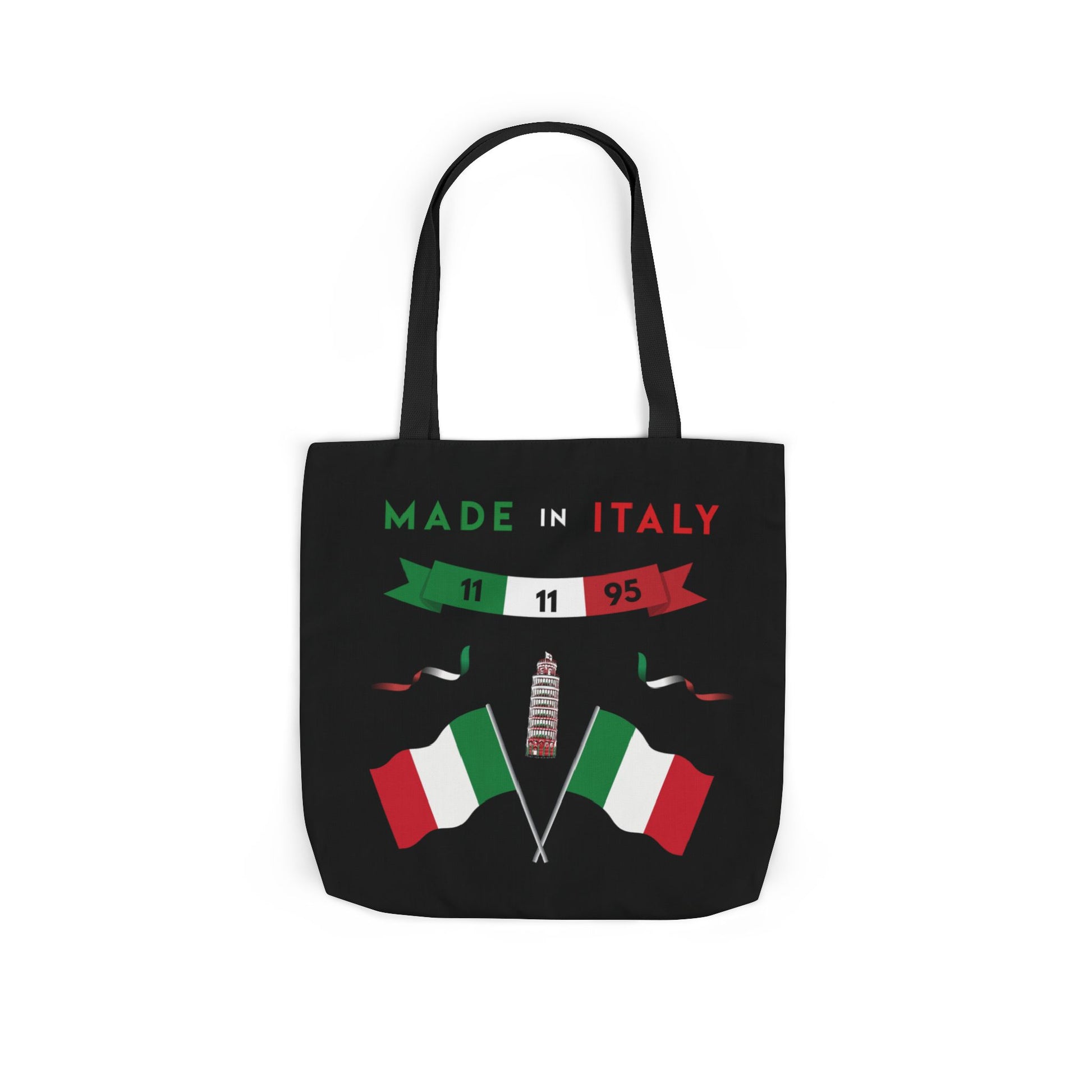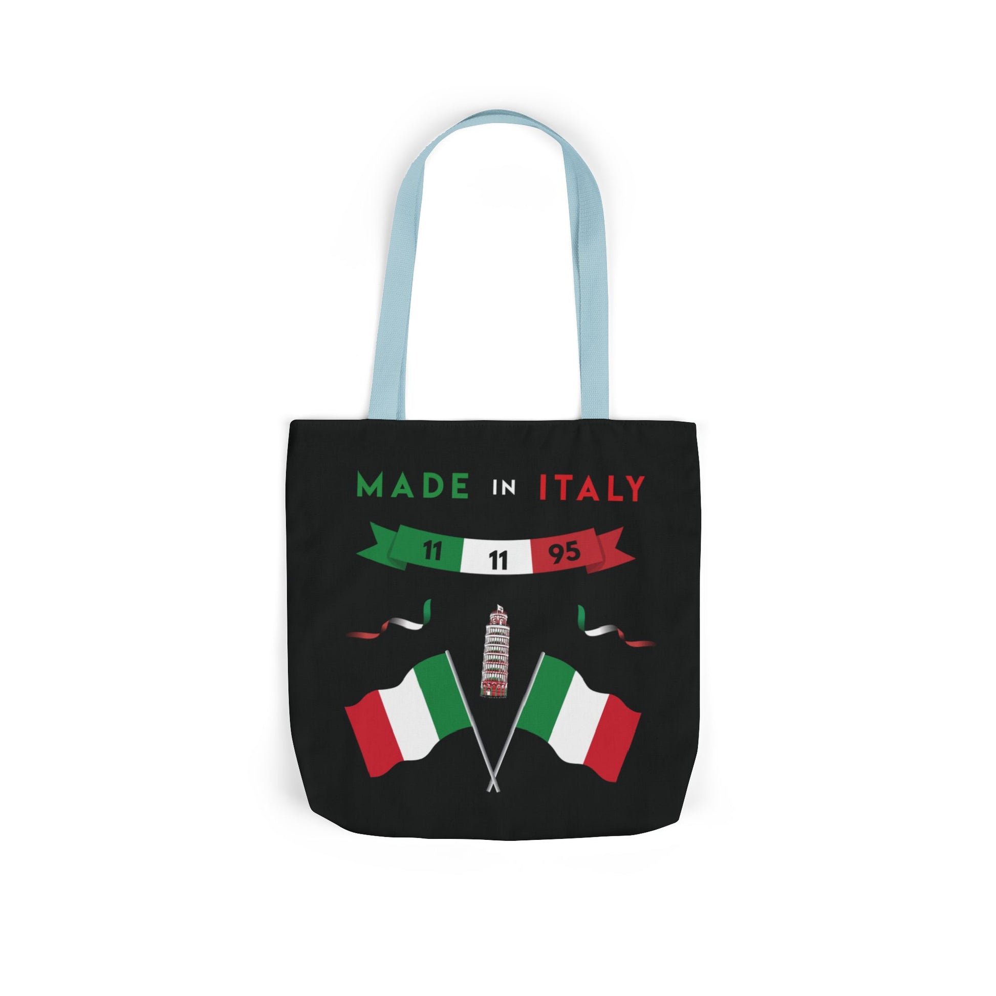 An Italy-themed black tote bag with vibrant colors that is perfect for carrying groceries, books, or beach essentials. This tote bag is ideal for travelers, Italy enthusiasts, and anyone who loves unique and colorful accessories. Great for vacations, trips to the farmer's market, and everyday use.