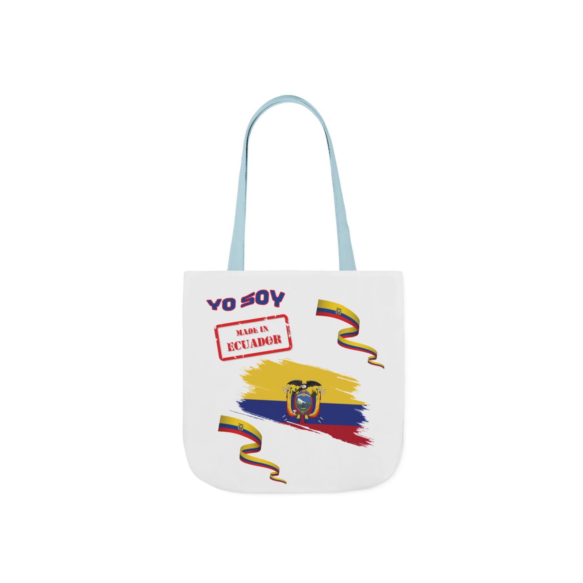 Ecuadorian Pride White Canvas Tote Bag with 5-Color Straps – Te Amo & Yo Soy Designs( Personalized Date of Birth & initials)